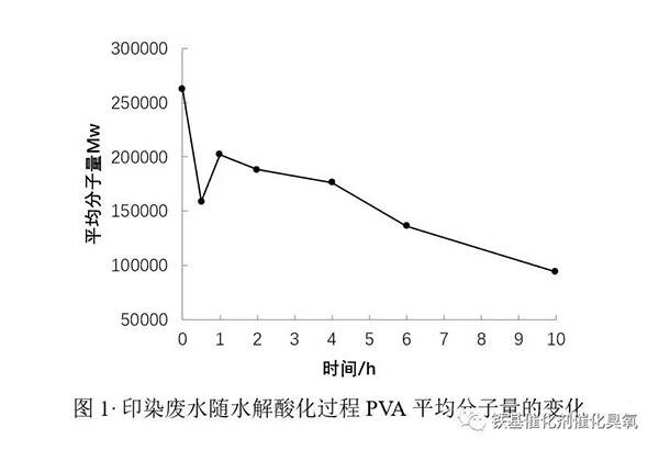 對(duì)于一些高聚物,在水解酸化段比在好氧生物段,“水解”作用進(jìn)行得更充分,即“大分子變?yōu)樾》肿印?,由此可生化性提高。如我們的研究,水解酸化處理?shí)際印染廢水中的PVA(聚乙烯醇),對(duì)降低聚合度有顯著的作用,如圖1;而好氧生物處理工藝對(duì)PVA的降解,明顯弱于水解酸化過程,如圖2;經(jīng)過水解酸化預(yù)處理后,好氧生物處理去除有機(jī)物的效果明顯提高。