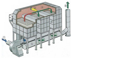 2.氧化產(chǎn)生的高溫氣體流經(jīng)特制的陶瓷蓄熱體,使陶瓷體升溫而“蓄熱”,下個過程是廢氣從已經(jīng)“蓄熱”的陶瓷經(jīng)過,將陶瓷的熱量傳遞給廢氣,有機廢氣通過陶瓷作為換熱器載體,反復進行熱交換,從而節(jié)省廢氣升溫的燃料消耗,降低運行成本,熱回收效率高達95%。